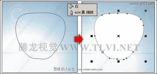 “貝塞爾”工具,在頁面中繪制出蘋果圖形的輪廓路徑,然后將其填充色設置為白色,輪廓色設置為60%黑色,如圖4-111所示。