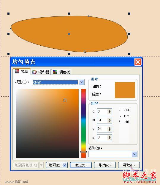 用“橢圓工具”繪制一個橢圓形,填充顏色,如圖25B所示: