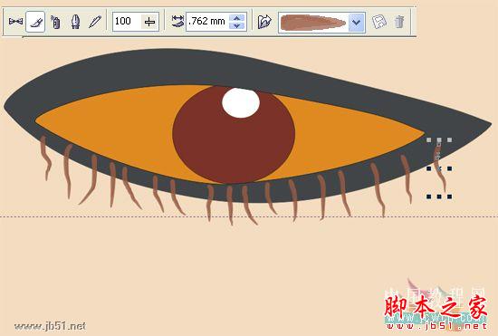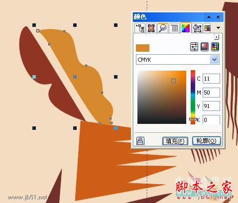 15、單擊“鋼筆工具”及“藝術(shù)筆工具”創(chuàng)建該圖形,選擇調(diào)色板中的相應(yīng)顏色,填充圖形如圖15A所示: