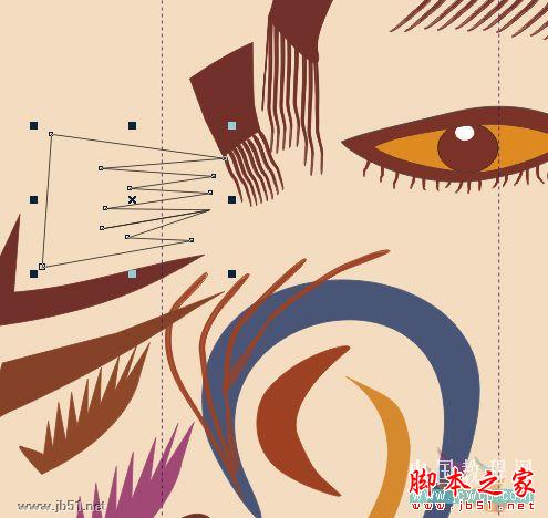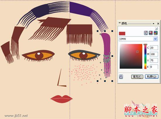 25、單擊“鋼筆工具”,創(chuàng)建頭的大概輪廓,單擊“形狀工具”,在所需調(diào)節(jié)的點上右擊選擇“曲線”(或稱為“反轉(zhuǎn)曲線”)命令,進行圓滑調(diào)節(jié)。然后,選擇調(diào)色板中的相應(yīng)顏色,填充圖形,如圖25A所示: