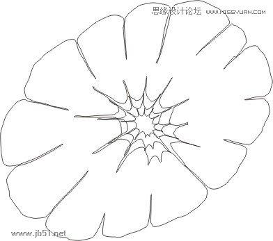 5、畫好橙子的外皮就要畫它的里面了,先把橙子的里面輪廓畫出來(最里面畫一個就可以了,放小就能用)