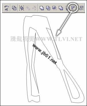 (13)使用"貝塞爾"工具,參照?qǐng)D5-15所示在頁(yè)面空白處褲子圖形上繪制不規(guī)則圖形,然后框選褲子和不規(guī)則圖形,單擊屬性欄中的"后減前"按鈕,對(duì)圖形進(jìn)行修剪。