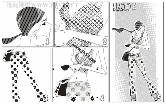 實(shí)例的在制作過(guò)程中,將填充工具與位圖編輯工具結(jié)合使用,靈活的創(chuàng)建出網(wǎng)點(diǎn)和紋理圖案。如圖5-3所示,為本實(shí)例的制作流程。