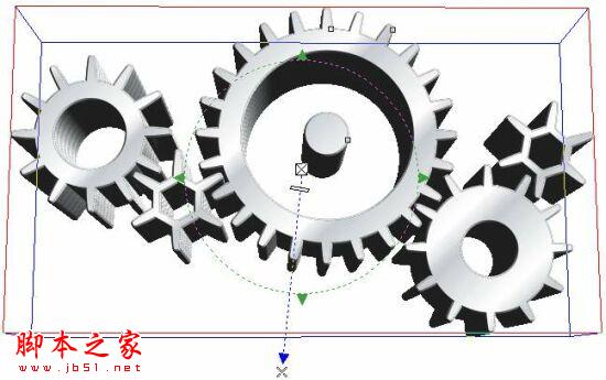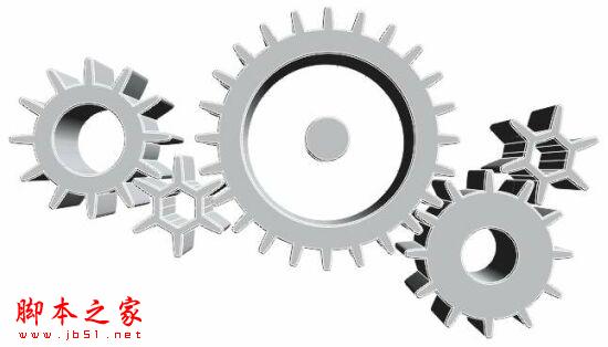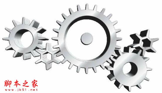 (8)利用上面的技術,我們可以制作更多不同形狀的齒輪,而且讓它們相互嚙合——實現這一步的關鍵是所有的齒輪都要使用相同大小的輪齒,現在將第三步驟中的復制的輪齒拿過來,利用它生成其他的齒輪。大小不同的齒輪,輪齒間的間隔角度也不相同,最后按照你喜歡的樣式生成一組相互嚙合的齒輪,如圖。