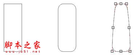 (2)現在制作一個輪齒。使用Rectangle Tool畫一個小矩形,將它圓角化,然后取得Interactive Envelope Tool,在屬性欄中單擊Single Arc Envelope Mode按鈕進入單弧線編輯模式,然后將它的上端變得窄一些,如圖。(提示:在使用Interactive Envelope Tool向內拖動矩形封套上端左邊的控制點時,按下Shift鍵可以使右邊相應的控制節點同時向內移動。)
