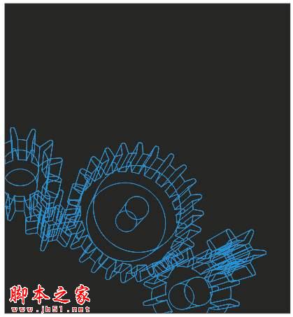 (12)還可以作出線框效果。將齒輪組無填充、淺藍色輪廓線、并取消Bevels設置——這組齒輪現在只是一個線框圖形了;按著Ctrl鍵使用Rectangle Tool 畫一個正方形,然后將它填充為黑色(Black);將齒輪線框移到正方形的左下角,然后執行Effects>PowerClip>Place Inside Container命令將它剪切到矩形容器中,如圖。
