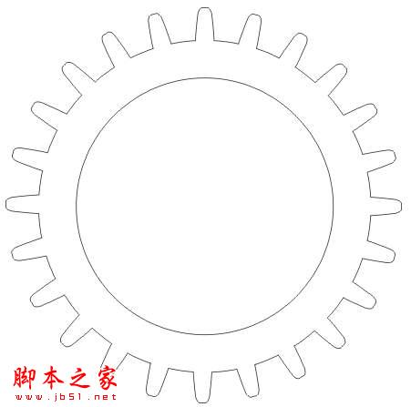 (1)打開Coreldraw,按著Ctrl鍵,使用Ellipse Tool畫一個圓形;然后將它復制,并按著Shift鍵向內拖動這個復制對象將它縮小;選中這兩個同心圓,按Ctrl+L鍵進行組合,現在得到一個圓環,這是齒輪的輪盤,如圖。