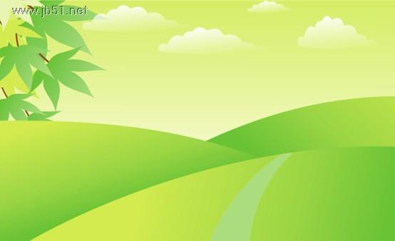 步驟二、再用貝塞爾曲線勾出好看的葉子,用交互式填相應的顏色,按著Ctrl加鼠標左鍵復制再復制,調整角度及填充不同的顏色,得到葉子并移到左上方,接著再勾出一些云彩,一同放到前面的那個背景圖上,如圖所示: