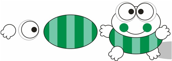 步驟五、接下來就是制作青蛙了,繪制圓,利用整形命令執行焊接、及復制,在繪制矩形,復制二個,精確剪裁圓內,并填充相應的顏色,得到如圖: