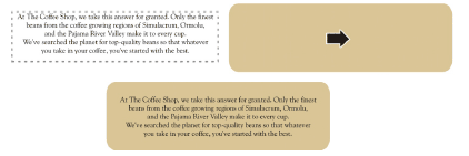 2.在背景之外放置光標,輸入“the finest beans. (thank you)”;