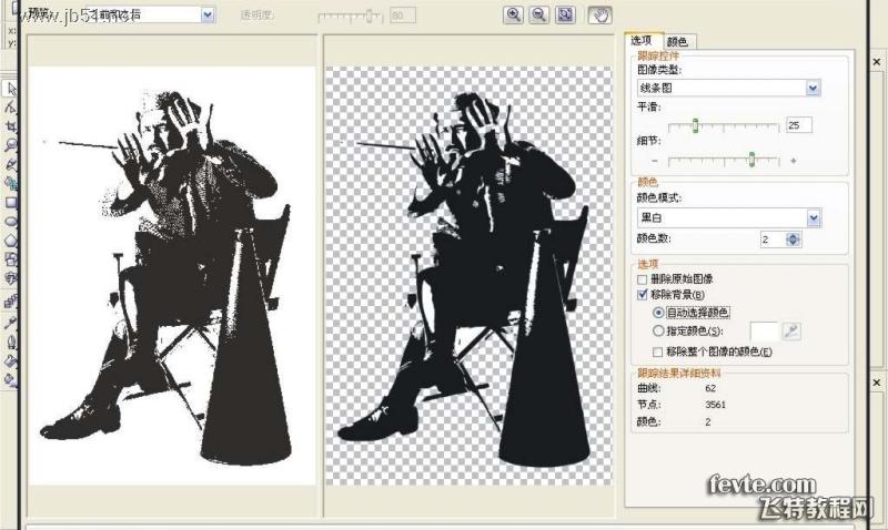 第二步, :"位圖"-->"描摹位圖"-->"線條圖"