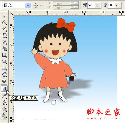 35、影子。把小丸子的各個部分全部選中,Ctrl+G群組。選擇交互式陰影工具,從腳部開始向右上方拉出一個影子,參數設置如下。
