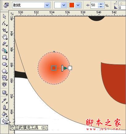 29、臉上紅暈。用橢圓工具畫一個小橢圓,選擇交互式填充工具(快捷鍵為G),在橢圓上拉出一個從紅到白的漸變,方式為射線。