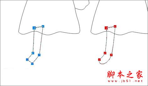 10、用形狀工具選中所有節點,Ctrl+Q轉為曲線后調整為裙子的形狀。