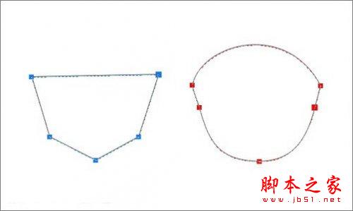 1、臉。用貝塞爾工具畫出如下五邊形,用形狀工具選中所有節點,Ctrl+Q轉為曲線后調整到如下形狀。