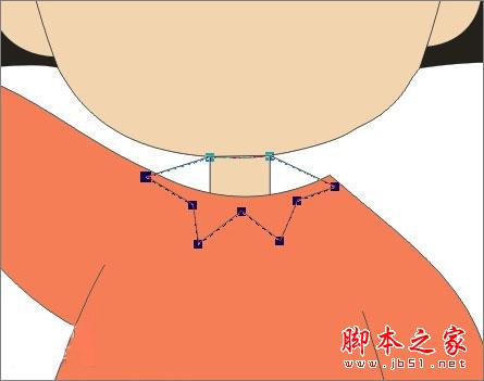 12、用貝塞爾工具在胳膊與身體相交處畫兩條曲線,形成袖子上的褶皺。