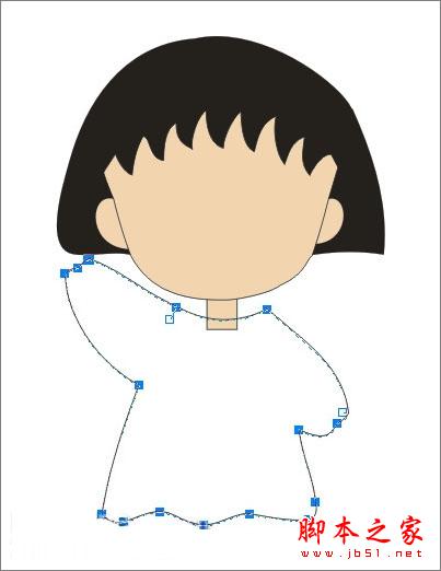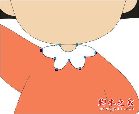 14、用形狀工具選中所有節點,Ctrl+Q轉為曲線后調整各尖角為弧形,填充白色完成衣領。