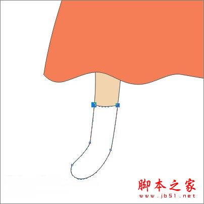 17、按小鍵盤上“+”號鍵原地復制一只腳,用形狀工具選中它頂端的兩個節點并下移到如下位置,填充白色形成襪子。