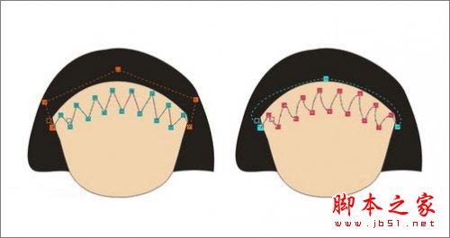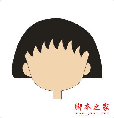 5、劉海。用貝塞爾工具畫出如下鋸齒形的劉海,用形狀工具選中所有節點,Ctrl+Q轉為曲線后調整各尖角為弧形。