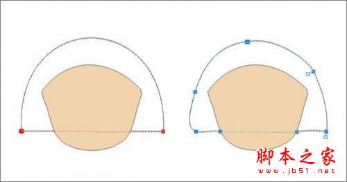 3、頭發。用貝塞爾工具畫出如下半圓形,用形狀工具選中所有節點,Ctrl+Q轉為曲線后調整到如下形狀。