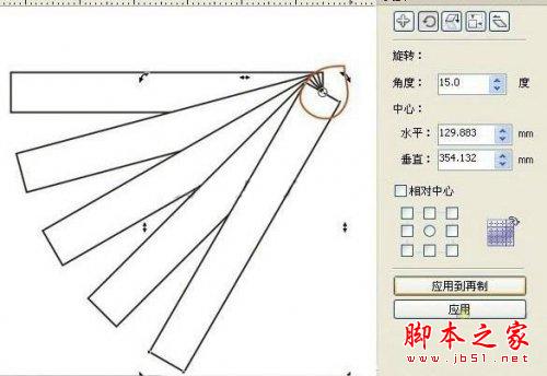 做好準備工作,先要掌握旋轉復制,有兩種方法:一種是ALT+F7打開變換窗口,弄懂中心和角度,(應該一目了然,不在贅述),最后點擊"應用到再制"得到相應的數量。二是鼠標右擊復制,再CTRL+D重復復制,得到相應的數量。