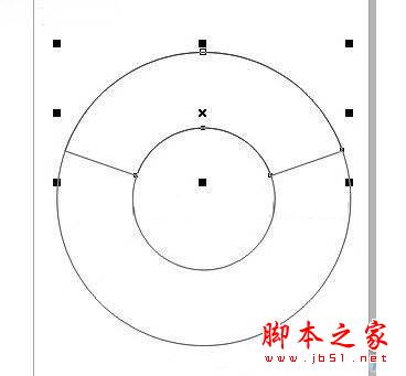 1.畫一小一大兩個同心圓,修剪成一個圓環,再畫一個如圖所示,一個扇形與圓環相交,得到扇面的雛形