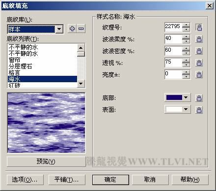 “紋理填充對話框”按鈕,打開“底紋填充”對話框,參照圖10-40所示設置對話框,為副本圖形填充底紋。