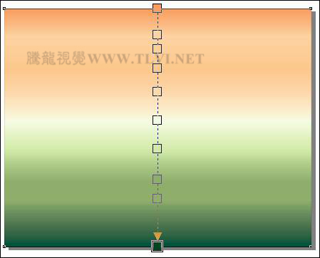 提示:為矩形填充漸變色從下至下依次為桃黃,杏黃,淺黃色(C0、M17、Y34、K0),沙黃,淡黃色(C0、M13、Y25、K0),淡綠色(C2、M0、Y9、K0),綠色(C11、M1、Y35、K0),馬丁綠,馬丁綠,深綠色(R9、G66、B22)。
