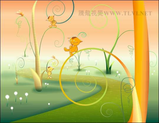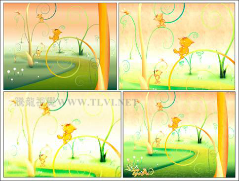 (13)將小花圖形群組,并再制多個,參照圖10-47所示分別調整其位置與大小。接著執行“文件”→“導入”命令,導入本書附帶光盤/Chapter-10/“動物.cdr”文件,按下<Ctrl+U>鍵取消組合,分別調整其大小與位置。