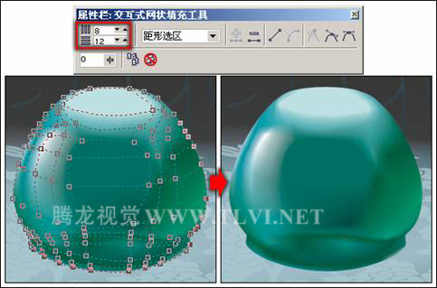 “交互式網格填充”工具,為再制圖形添加網格填充效果。