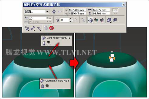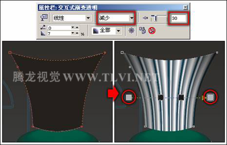 “交互式透明”工具,對其透明效果進行調整,如圖8-145所示。