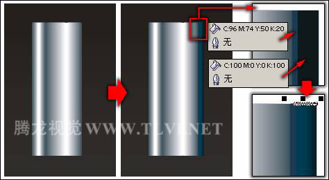 (4)接下來參照圖8-137所示,在瓶身圖形上繪制一個填充漸變色的圖形,然后將該圖形原位置再制,并將再制圖形等比例縮小。使用