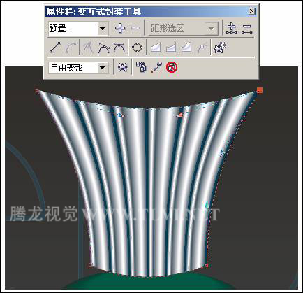 “選擇”工具,將剛創建的調和群組圖形選中,按下<Ctrl+G>鍵將其群組。然后按下小鍵盤上的<+>號鍵將其原位置再制,接著單擊屬性欄中的