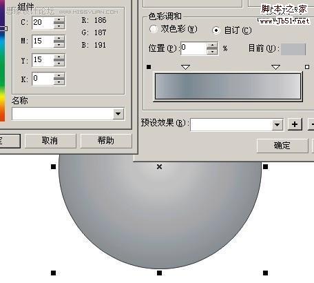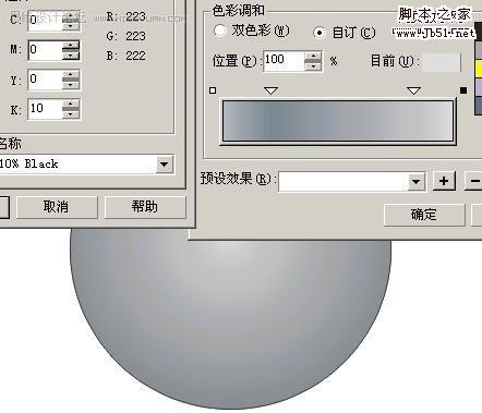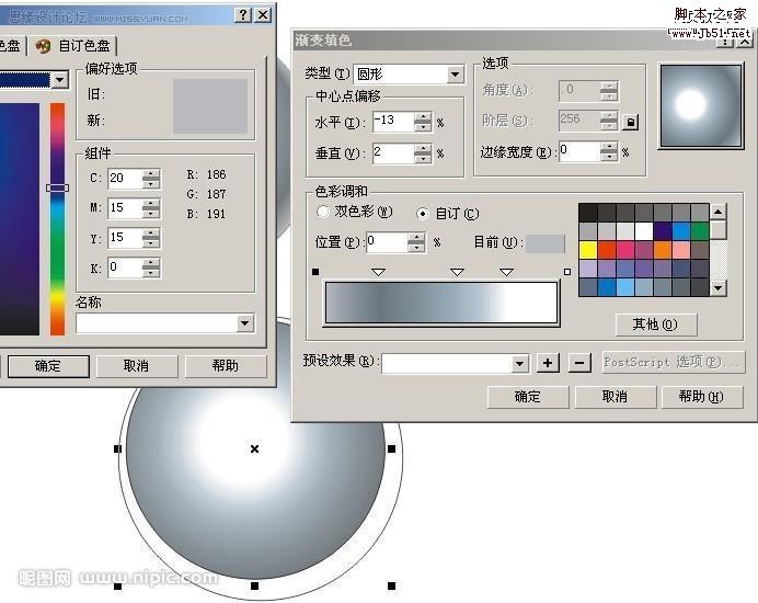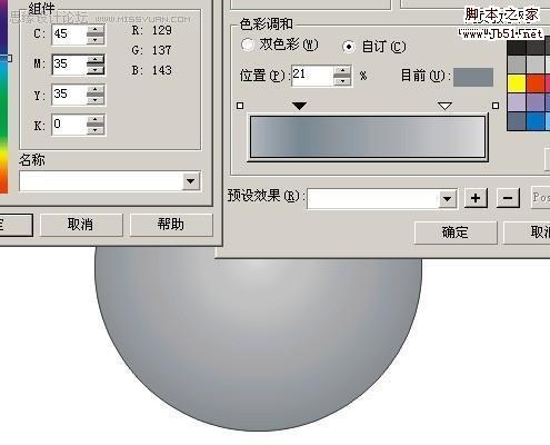 將兩個圓復制出來,開始調色,先調小圓的顏色,按F11調節,自己看,顏色的比對,還有位置,漸變的類型,中心點的位置
