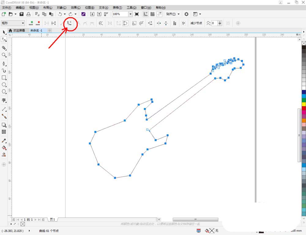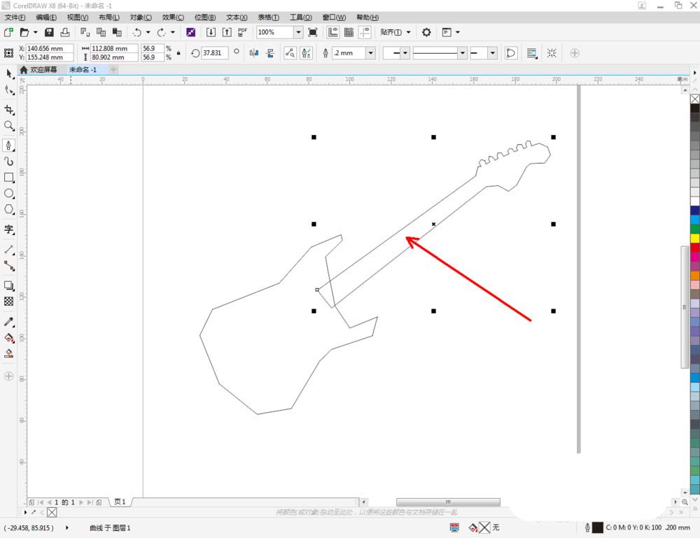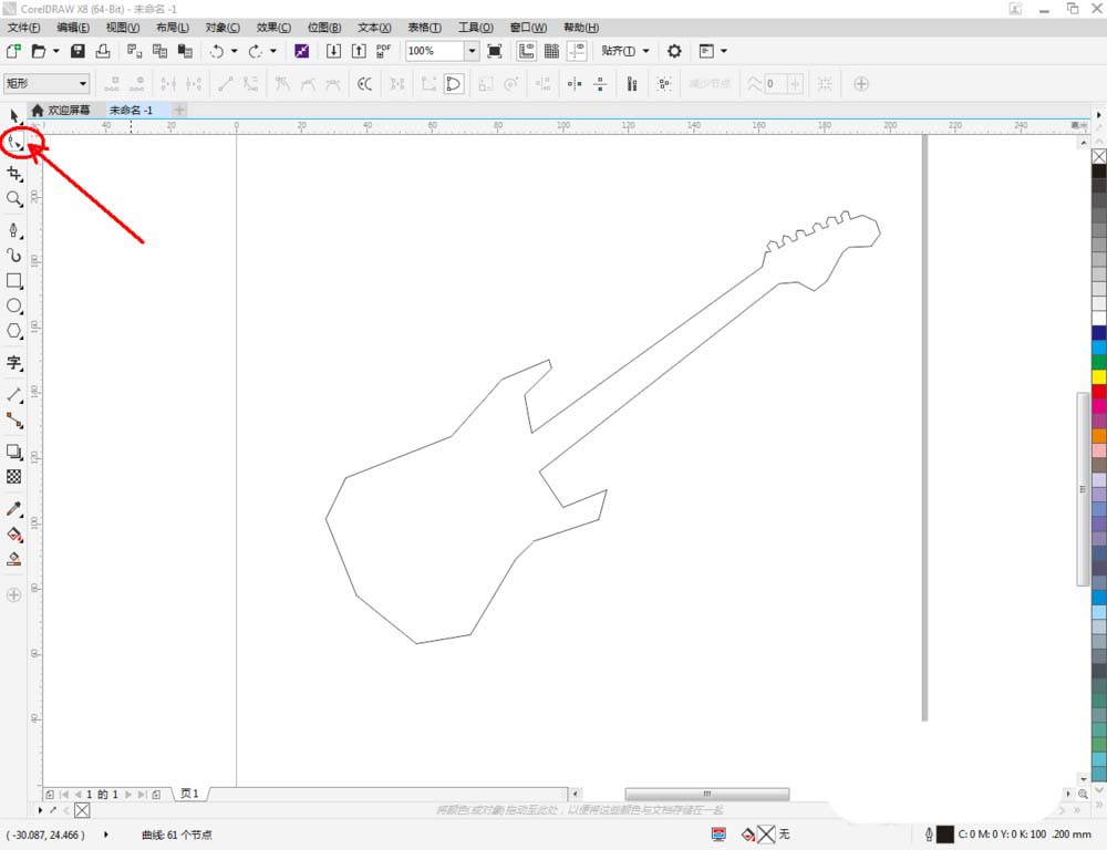 3、選中琴體圖案,點擊【形狀工具】,選中圖案上的所有點,點擊【轉換為曲線】將圖案轉曲后,按圖示調整控制點,完成整個琴體輪廓圖案的繪制(如圖所示);