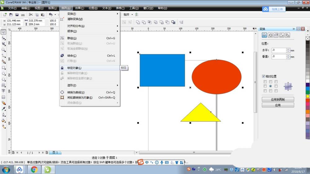 3、對(duì)于多個(gè)對(duì)象和群組對(duì)象的鎖定道理是一樣的,只需要按住Shift先選種這些對(duì)象,在點(diǎn)擊排列,點(diǎn)擊鎖定對(duì)象即可,如下圖所示。