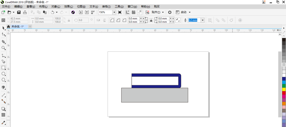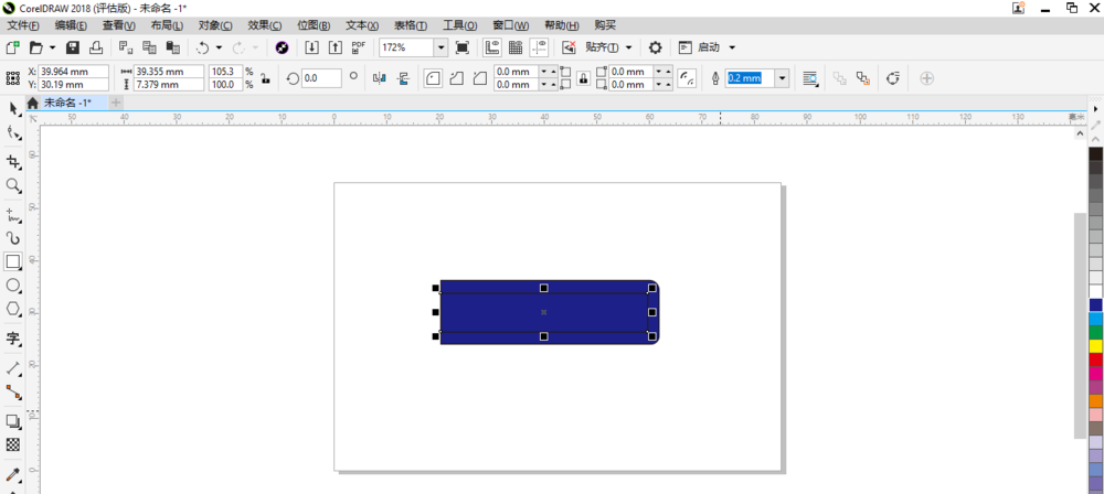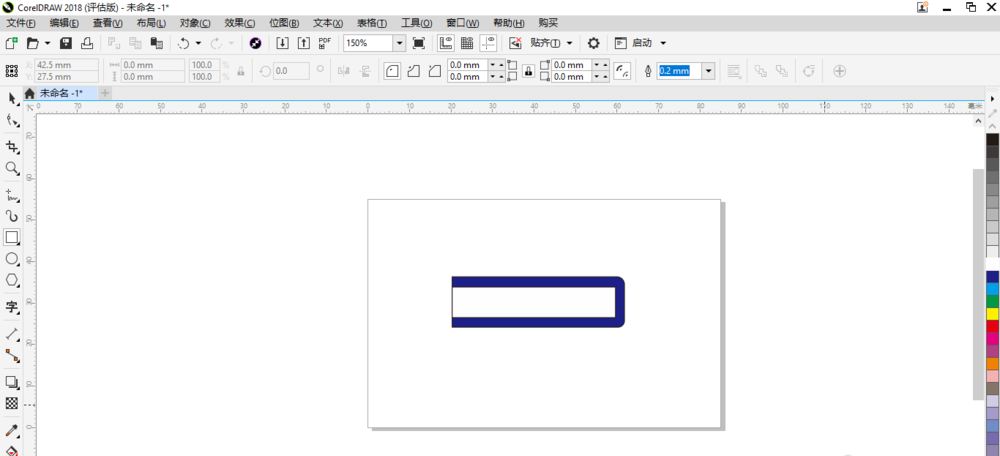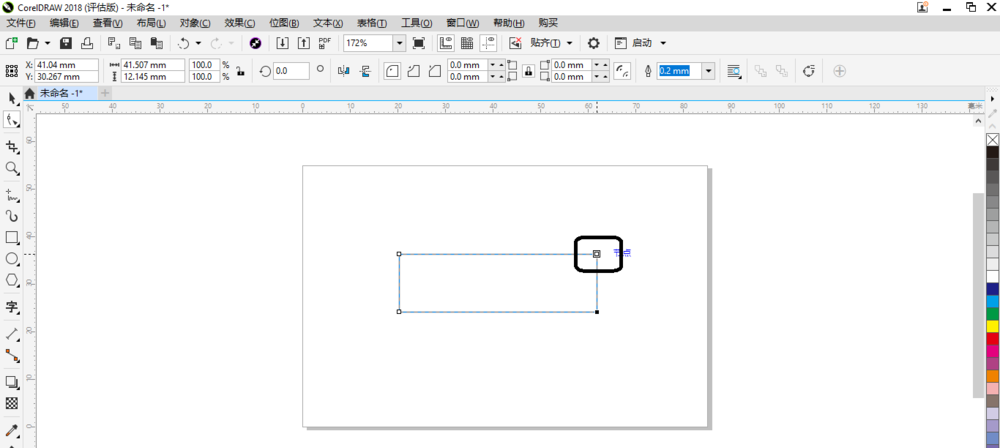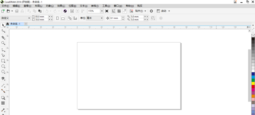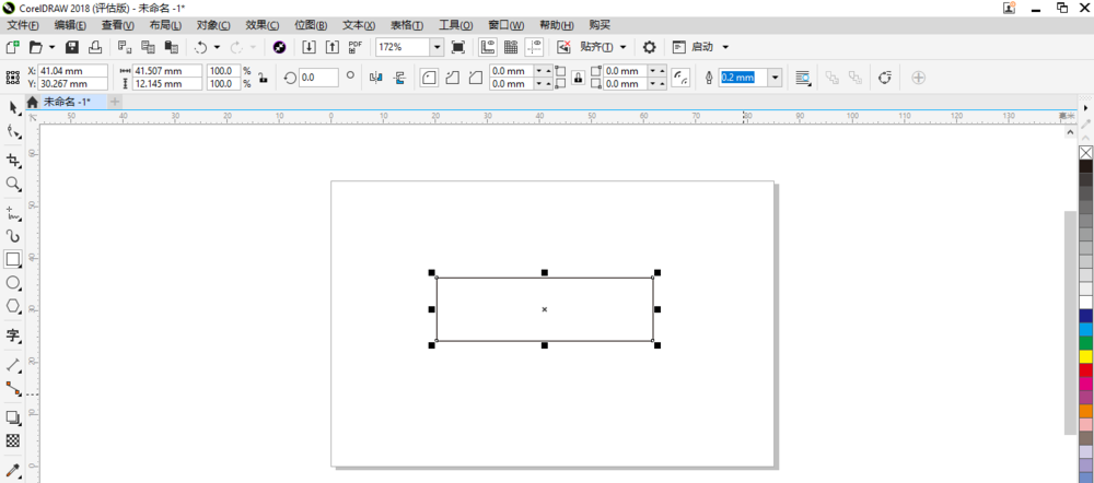 2、然后在工具箱中單擊“矩形”按鈕后再在空白畫板中矩形的形狀。