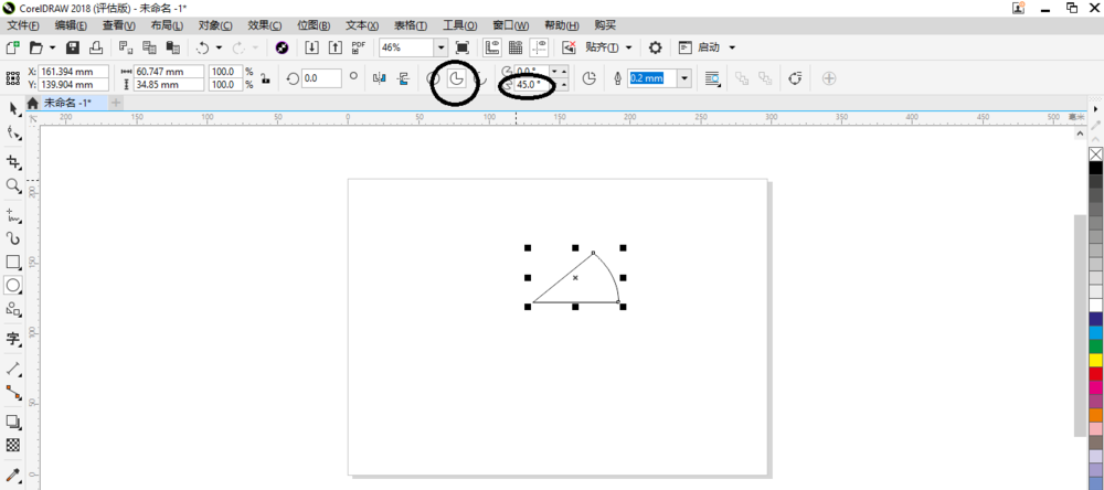2、然后在工具欄中單擊“餅形”按鈕并調整角度。