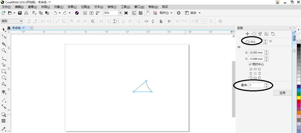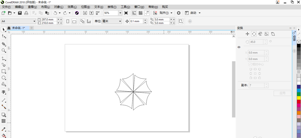 4、然后在變換中調整旋轉的角度與復制多個副本。