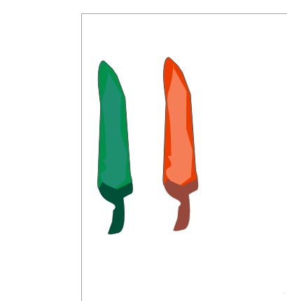 3、為辣椒中間設(shè)置一定陰影區(qū)域,閉合路徑后填充顏色為略淺。