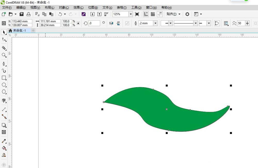 2、調整好平滑工具的參數,把畫好的葉子形狀適當的拉一下,就會看到弧度要平滑好看多了。很多時候畫圖都可以應用平滑工具快速調整一下會更好看。