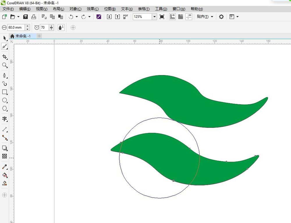 1、首先畫一個你想要的形狀,我這里畫了一個裝飾葉子弧形。填充了綠色。有點不那么美觀。向下復制了一個,做好后對比一下會更明顯。