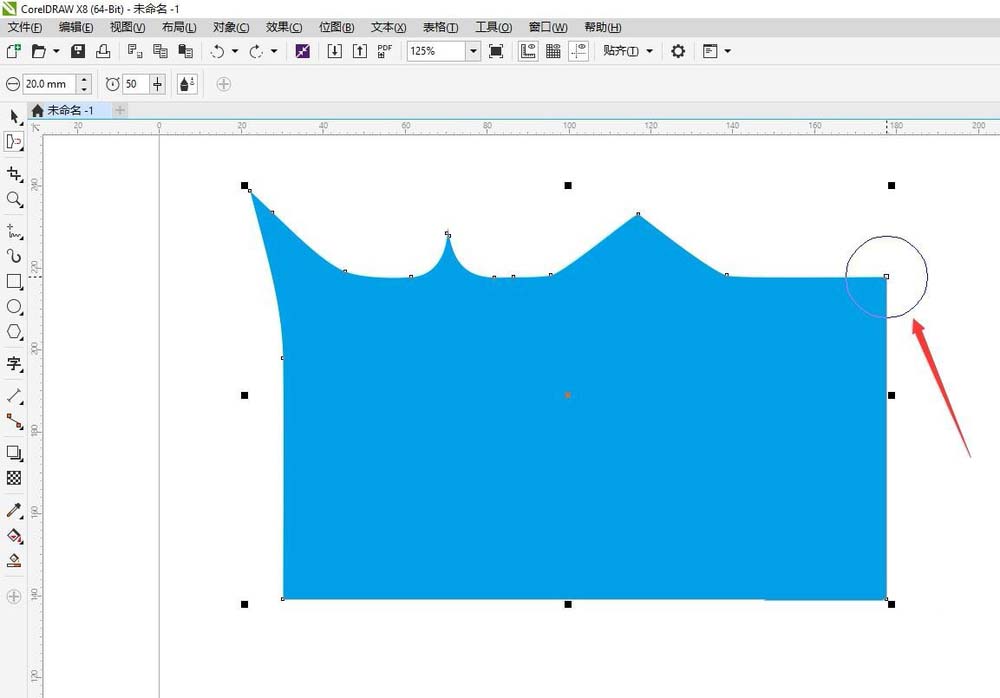 5、這里我們選擇一個(gè)節(jié)點(diǎn)邊緣向內(nèi)拉動(dòng),可以看到邊緣隨光標(biāo)向內(nèi)吸引了,以此來(lái)調(diào)整對(duì)象形狀。