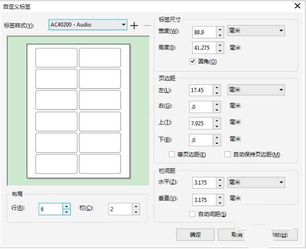 5、如果其中沒有需要的標簽樣式, 則可以單擊( 自定義標簽)按鈕,在彈出的“ 自定義標簽”對話框中分別設置標簽的“布局”、“標簽尺寸”、“頁邊距”和“欄間距”等相關參數。