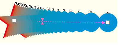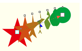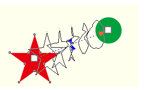 5、 在起始對象星形上按下鼠標左鍵不放,向結(jié)束對象的圓形拖動鼠標,此時在兩個對象之間會出現(xiàn)起始控制柄和結(jié)束控制柄。
