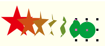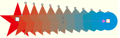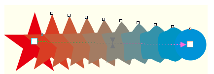 6、松開鼠標后,即可在兩個對象之間創(chuàng)建調(diào)和效果,起始對象和結(jié)束對象之間會顯示多個過渡對象。