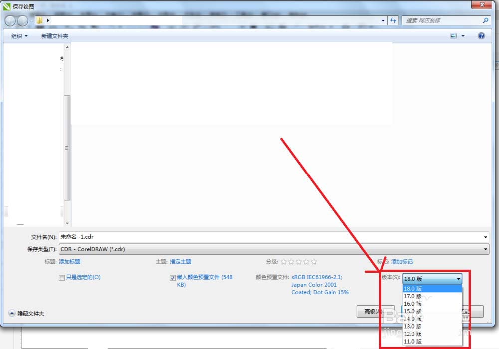 3、有多個(gè)版本給你選擇,你的版本+10,就是你的版本等級(jí)了。比如說(shuō)cdrx8 ,版本就是18.0版