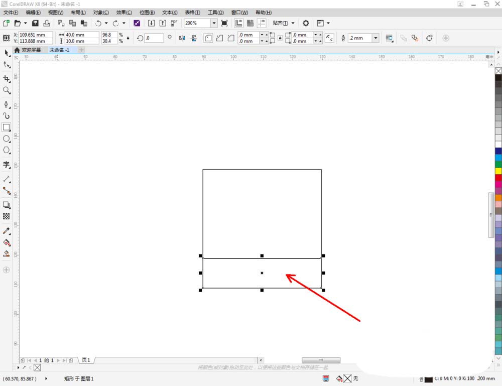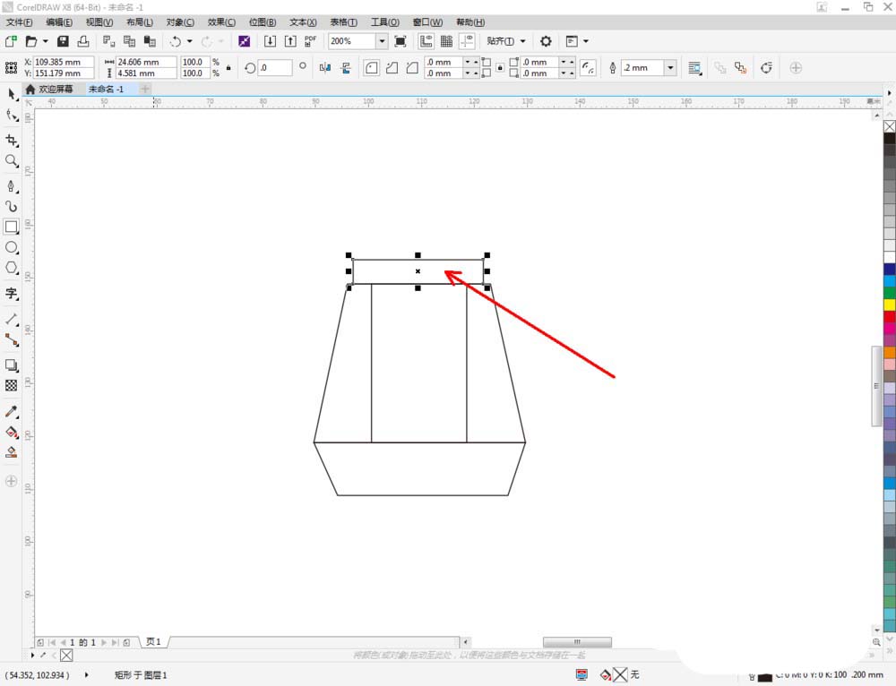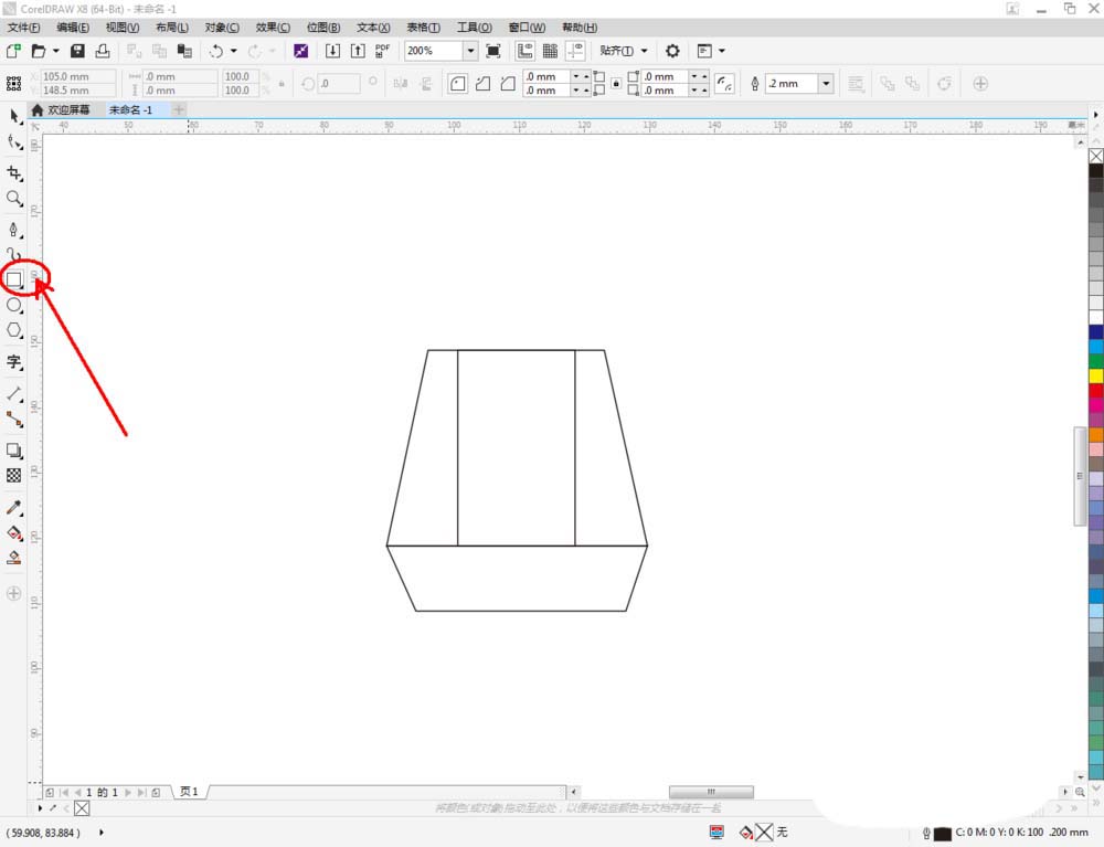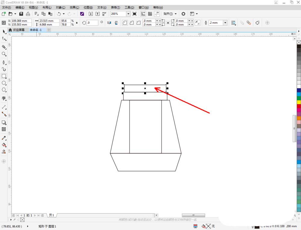 2、首先,點擊【矩形工具】,按圖示繪制三個矩形圖案。選中圖示兩個矩形,點擊鼠標右鍵-【轉化為曲線】將圖案轉曲。完成后,對矩形圖案上的節(jié)點位置進行調整(如圖所示);