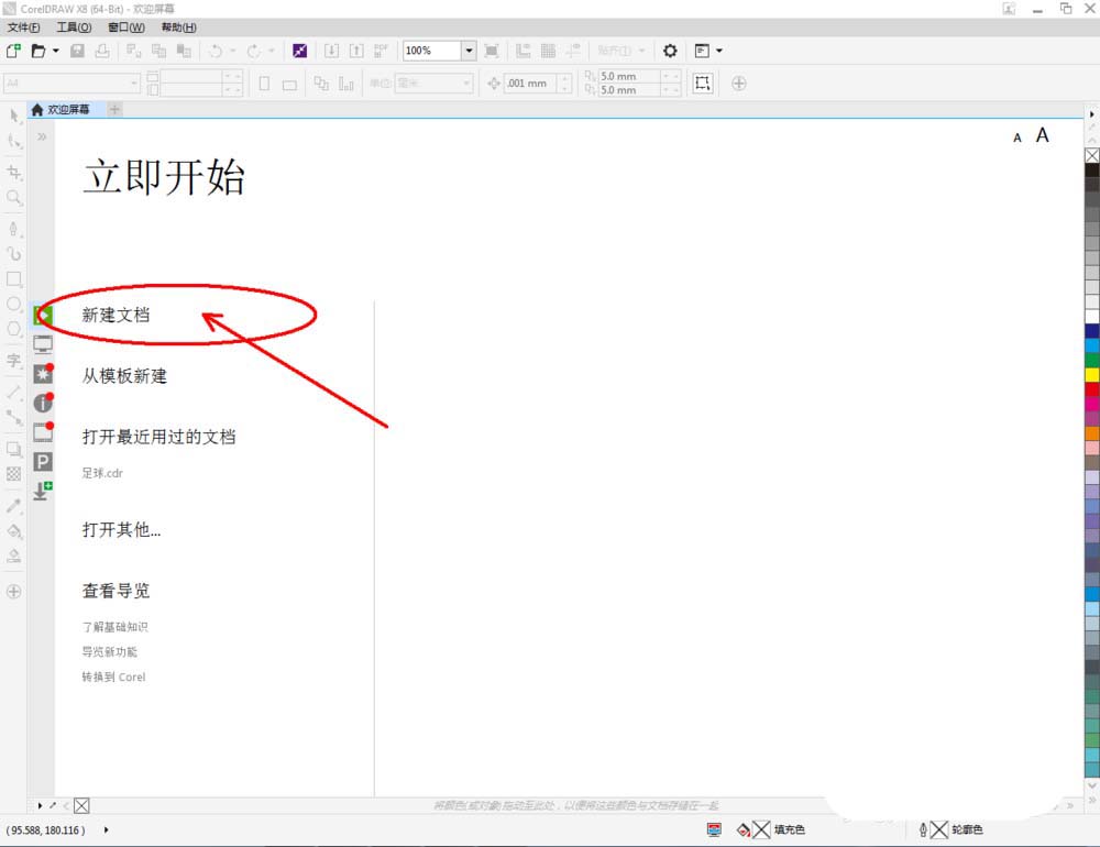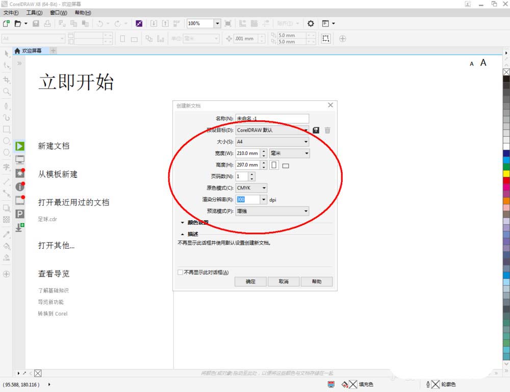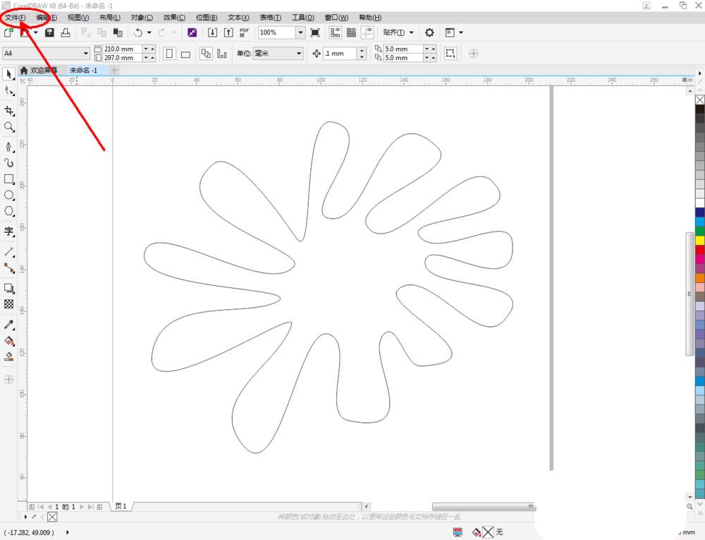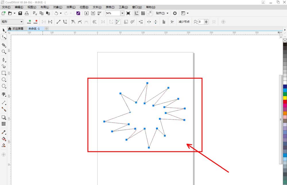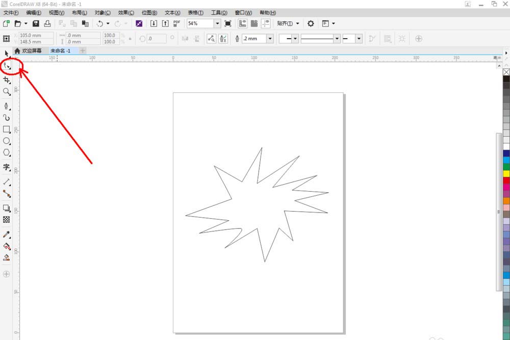 1、打開CorelDRAW X8 軟件,點擊【新建文檔】,按圖示參數新建一個cdr文檔。點擊【鋼筆工具】按圖示繪制一個多邊圖案;