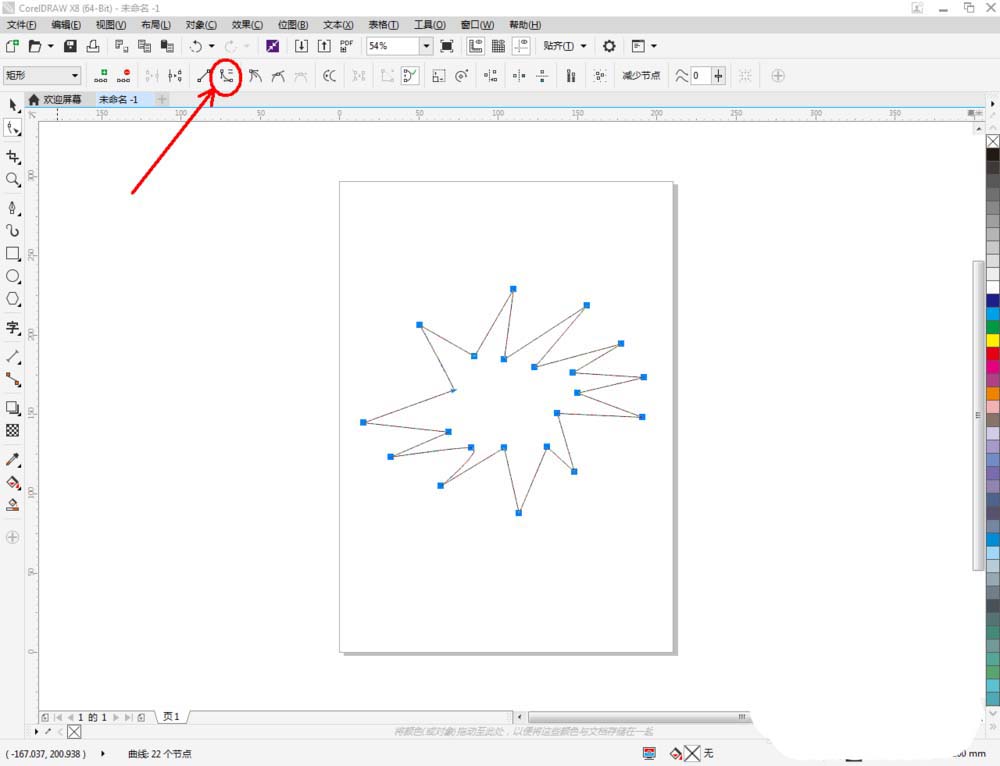 2、點擊【形狀工具】,框選圖案上的節點,點擊【轉化為曲線】將節點轉曲。完成后,選中圖示圖案上的節點,點擊【平滑節點】將節點進行平滑處理并調整好控制點,完成平面圖案的制作(如圖所示);